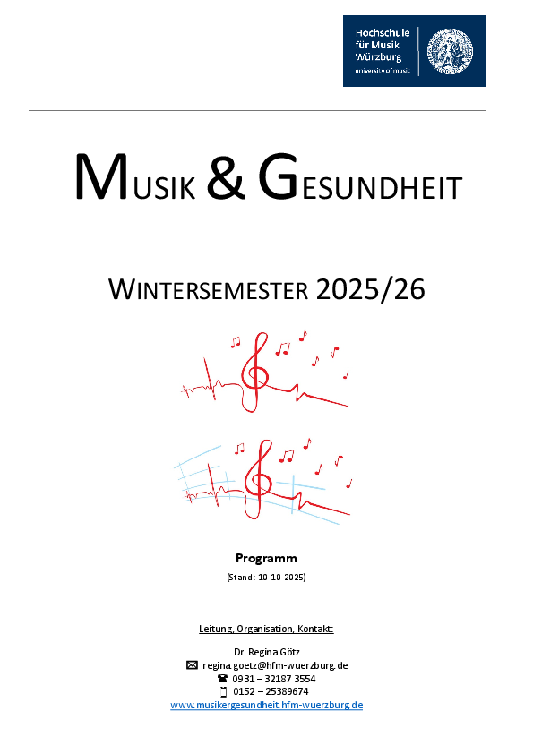- der Sensibilisierung der Studierenden für die gesundheitlichen Aspekte von Instrumentalspiel und Gesang