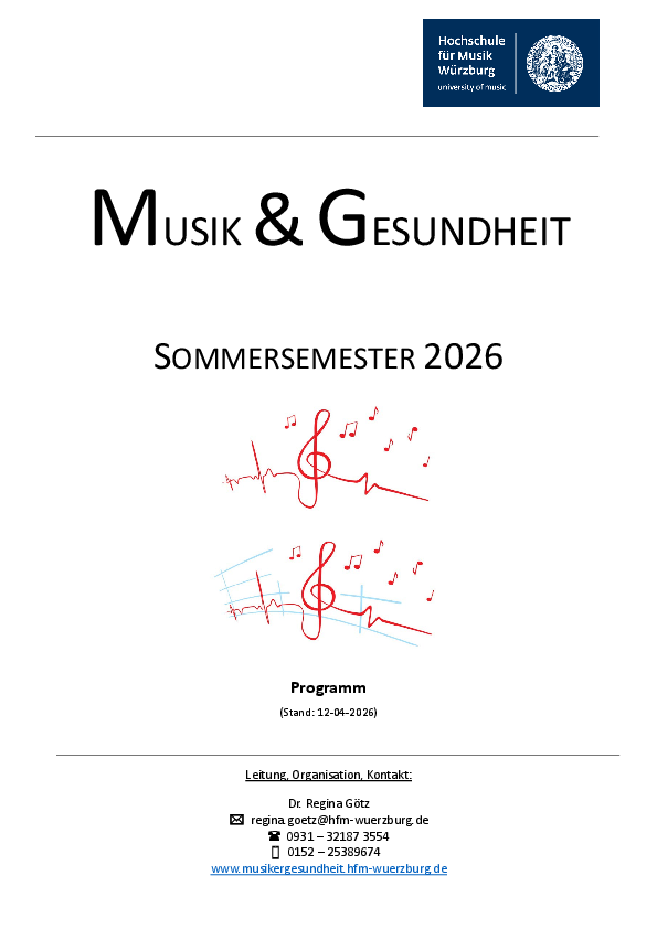- der Sensibilisierung der Studierenden für die gesundheitlichen Aspekte von Instrumentalspiel und Gesang